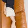 服装:紺のニット、白のミニスカ
