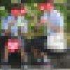 通りすがりの人がお姉さんに気が付いて、ウロウロしています。