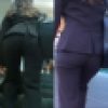 バックショットのお尻ではアソコの毛がはみ出てます。