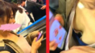 満員電車に乗り込むと 目の前に、胸元のゆるすぎるJDが。 しばらく背後から胸元のブラチラを観察し(収録) 降り際、指を引っ掛けて胸...